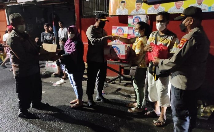Di kesempatan ini kami polsek tambora memberikan bantuan berupa air mineral 10 dust, pop mie 10 dust, dan nasi padang 200 bungkus