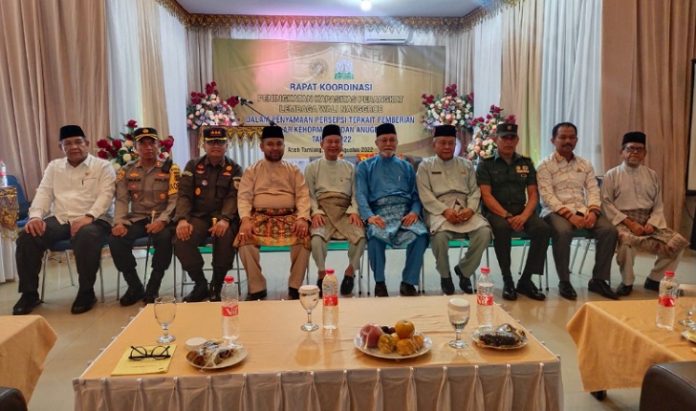 Suaraindonesia1-Aceh Tamiang, Bupati Aceh Tamiang, Mursil, SH, M.Kn sambut kunjungan kerja Paduka Yang Mulia Wali Nanggroe, Teungku Malik Mahmud Al Haytar beserta rombongan di Pendopo Aceh Tamiang. Selanjutnya dilakukan pembukaan Rapat Koordinasi Peningkatan Kapasitas Perangkat Lembaga Wali Nanggroe dalam Persamaan Persepsi terkait Pemberian Gelar Kehormatan dan Anugerah, dilaksanakan di Hotel Grand Arya, Karang Baru pada Kamis (25/8/2022).