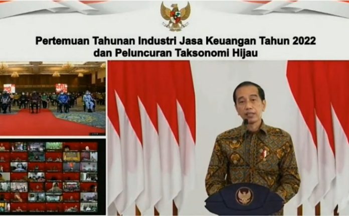 Jakarta – Suaraindonesia1, Presiden Joko Widodo secara resmi meluncurkan Taksonomi Hijau yang digelar oleh Otoritas Jasa Keuangan (OJK), dalam acara ini turut hadir Gubernur Sumatra Barat Buya Mahyeldi secara daring, bertempat di ruang Studio Vidcon Istana Gubernuran, pada Kamis (20/1/22).