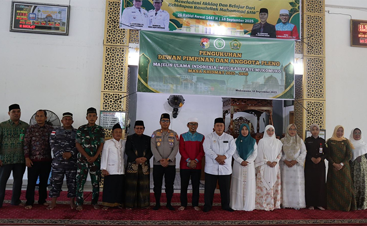 Kapolres Mukomuko AKBP Riky Crisma Wardana, S.I.K, mengahadiri Tabligh Akbar Peringatan Maulid Nabi Muhammad SAW 1447 H/2025 M, yang digelar Majelis Ulama Indonesia (MUI) Provinsi Bengkulu.
