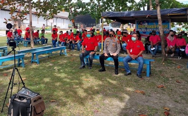 Yapen Waropen-Suaraindonesia1, Kapolri Jenderal Polisi Drs Listyo Sigit Prabowo meninjau pelaksanaan serbuan vaksinasi serentak melalui zoom meeting di seluruh jajaran Polres Nusantara termasuk di jajaran Polres Kepulauan Yapen yang di tunjuk oleh Mabes Polri dalam rangka progres capaian vaksinasi presisi serentak yang di laksanakan oleh Polres di area PT.SWPI Distrik Yapen Timur.Kamis (16/12/2021).