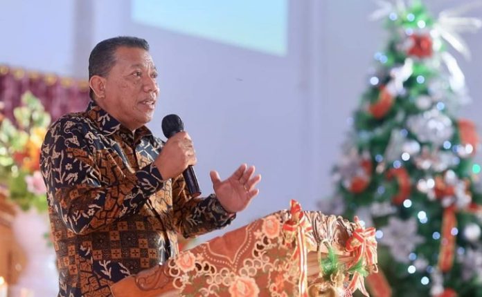 Bolmut, Suaraindonesia1-Bupati Bolmut Drs. Hi. Depri Pontoh Menghadiri Kegiatan Perayaan Natal Bersama Pemerintah Daerah dan Masyarakat Kabupaten Bolaang Mongondow Utara Tahun 2021 yang bertempat di Gereja GMIBM Mokoditek Kecamatan Bolangitang Timur (18/12/2021)