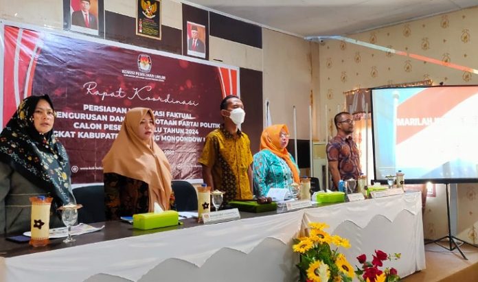 BOLMUT, SUARAINDONESIA1.ID-Komisi Pemilihan Umum (KPU) Bolaang Mongondow Utara (Bolmut), Provinsi Sulawesi Utara (Sulut) Melaksanakan rapat koordinasi pelaksanaan verifikasi faktual kepengurusan dan keanggotaan partai politik calon peserta Pemilu 2024.