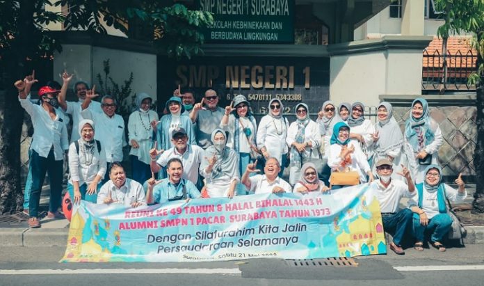 SURABAYA – Suaraindonesia1, Ketua DPD RI, AA LaNyalla Mahmud Mattalitti, menghadiri Reuni ke-49 dan Halal Bihalal 1443 H Alumni SMPN 1 Pacar Surabaya Tahun 1973, Sabtu (21/5/2022). Pada acara yang mengambil tema ‘Dengan Silaturahmi Kita Jalin Persaudaraan Selamanya’, keseruan langsung pecah begitu LaNyalla hadir.