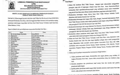 Dipaparkan bahwa rapat tersebut dihadiri oleh perwakilan/unsur masyarakat Kelurahan Koto Baru :