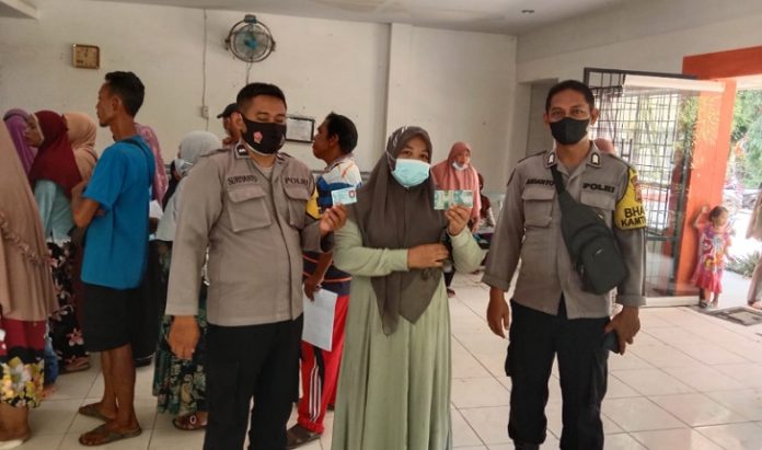Suaraindonesia1-Aceh Tamiang-Anggota Polsek Kualasimpang Aipda Suriyanto dan Bripka Arianto Monitoring penyaluran Bansos Sembako/BPNT periode bulan Mei 2022 dan penyaluran bansos subsidi Minyak Goreng untuk bulan April, Mei dan Juni 2022 serta BPNT Periode Bulan Mei di Kantor Pos Kualasimpang Kec.Kualasimpang.