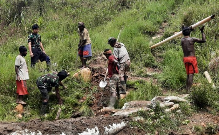 Lebih lanjut disampaikannya, dalam gelar karya bhakti yang dimotori personel Pos Mbua dipimpin langsung oleh Dansimayon Satgas Sertu Tomi Pasela, juga diikuti oleh tokoh pemuda kampung Digilmo Minus Kusumbre.