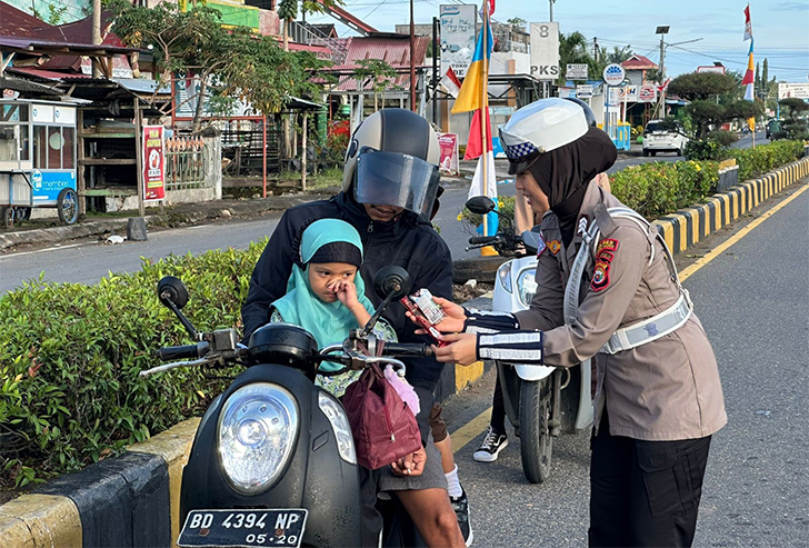 Kegiatan Polwan simpatik memberikan edukasi dan imbauan di beberapa titik kepada pengendara di ruas jalan yang padat aktivitas masyarakat, Kamis (18/9/2025).