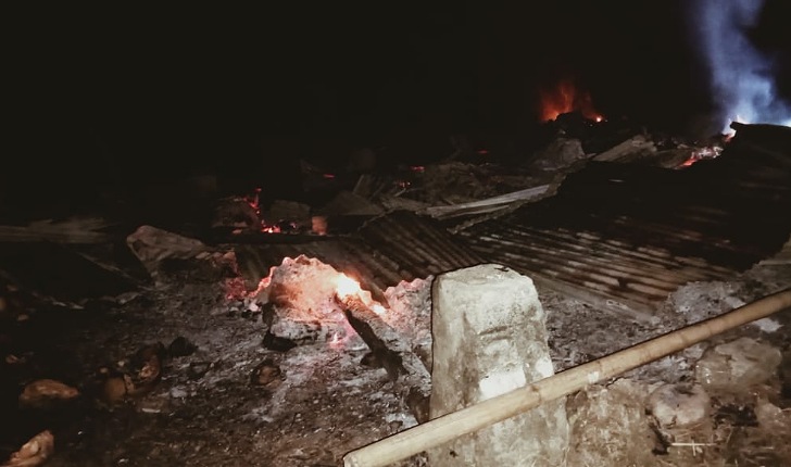 Pada Saat Mengeringkan Kelapa dengan Asap api menyebabkan Rumah Domnikus Dita Horo,Mengalami Kebakaran pada Pukul 16:30 WITA