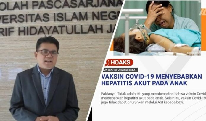 Direktur Sekolah Pasca Sarjana UIN Jakarta, Prof. Dr. Phil. Asep Saepudin Jahar, MA mengatakan bahwa, saat ini ada beberapa hoaks yang masih beredar di masyarakat khususnya hoaks terkait pandemi Covid-19, seperti hoaks vaksinasi, penyakit mulut kuku (PMK) pada hewan, hepatitis akut pada anak, yang semuanya disebabkan oleh Covid-19.